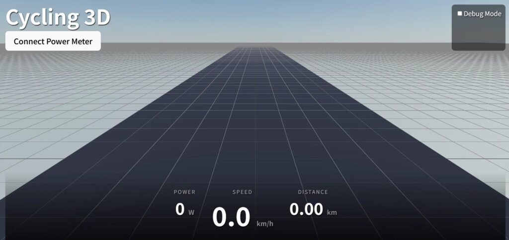 3Dの道が表示されて、パワーメーターと接続するボタンもある。 POWER、SPEED、DISTANCEの表示もあるじゃないですか。